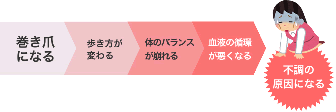 いつまでも元気で暮らすためにも巻き爪を改善し、体のバランスを正しい状態に戻してあげて下さい。