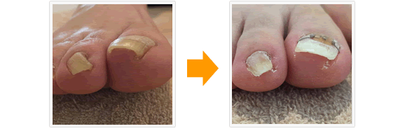 1度目の施術で痛みから解放されその後の施術で爪の変形を戻していきます。