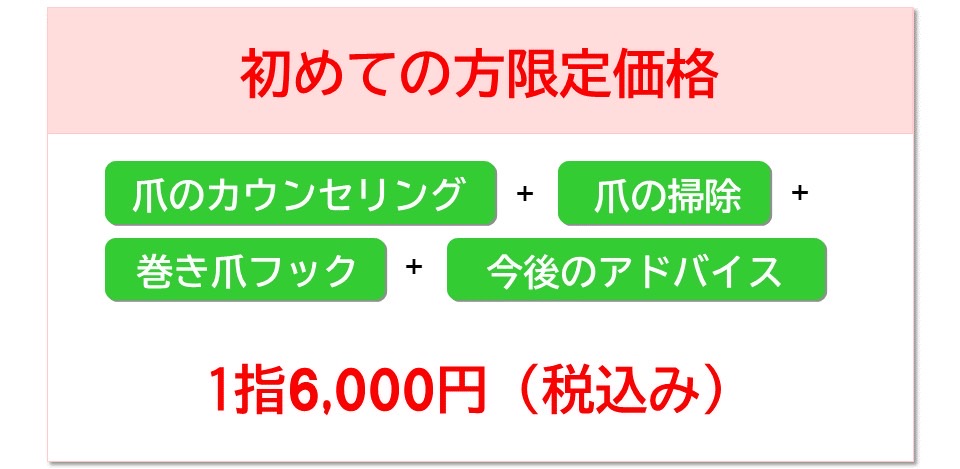 今回、巻き爪の施術にてこちらに寄せて頂く事になりました。