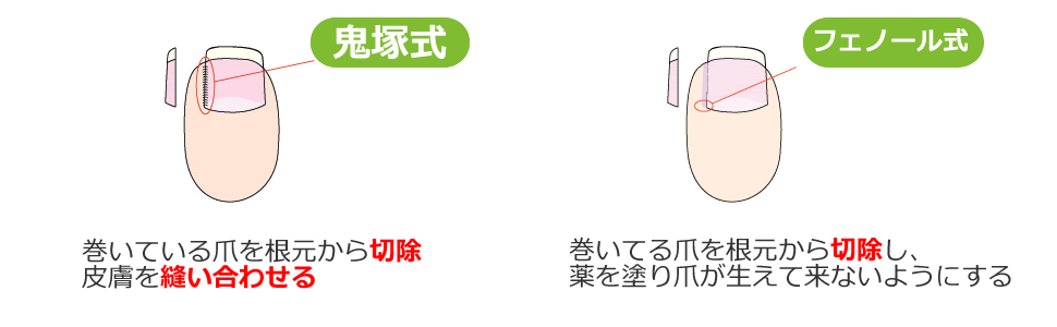 巻き爪を改善させるための施術は大きく分けると3つあります。